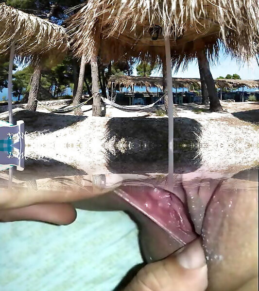 Chubby mature pussy pissing on public beach