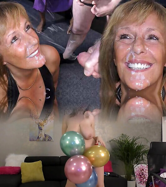 British mature wife lets guys cum on her face