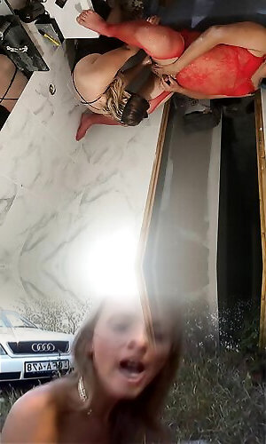 two sizzling youthfull women in undergarments see as he jacks, grope soles