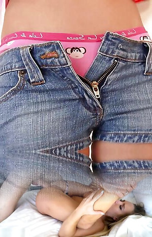 Stepmother in cut-offs on high heels gets a lot of jism in twat