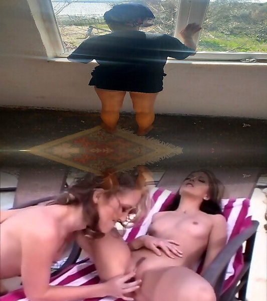 Approach with busty aunt gently massaging her pussy