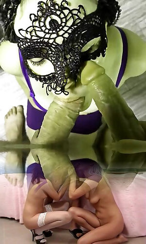 2 porn starlet lesbos with phat dangling baps strap-on romping each other