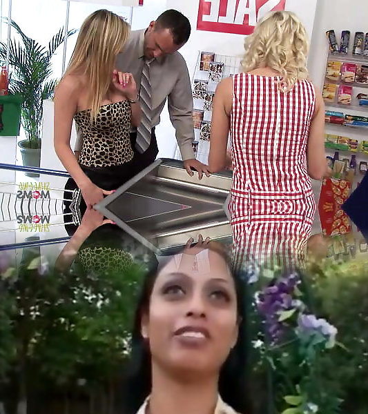 Compensating the towheaded cougar with big baps who found a fake penis inside the shop with a muddy 3some