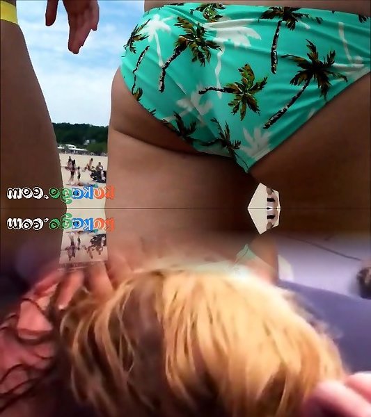 First-timer sweeties dressed in bathing suits get caught on a voyeurs cam on a beach