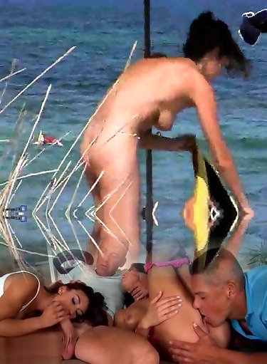2 huge-chested and mischievous fucksluts enjoy threeway assfucking on the sandy beach
