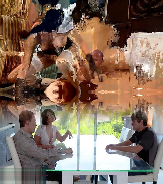 Adult Movie Star takes trouser snake in her gullet then rides man rod from behind