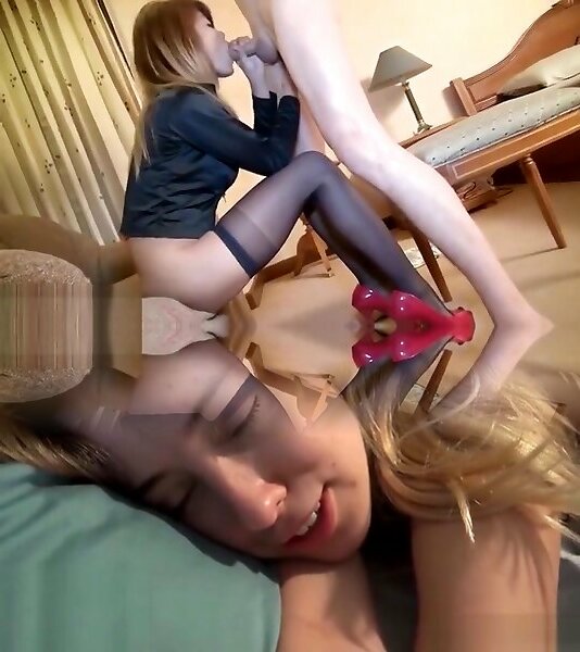 Lezzies munching feet and smooching in tights and bootlessly