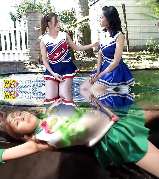 Two lesbian cheerleaders love to kiss and lick each others hairy pussy