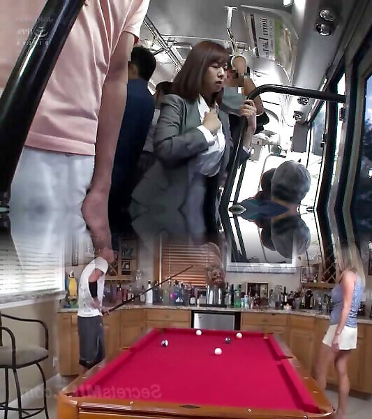 Girlfriends flow while they kiss and munch beaver in public cafe