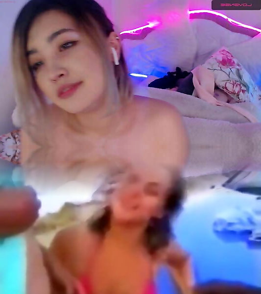 Kinky virtual bi-atch strokes with her thumbs while everyone observes her live