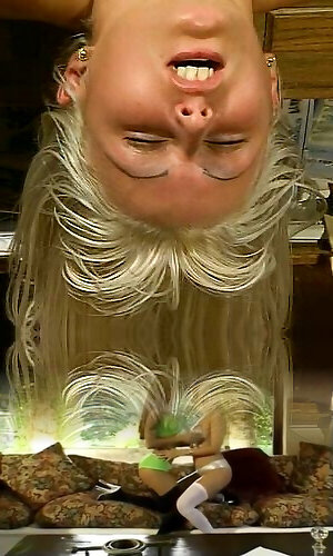 Platinum-blonde mature cougar female 3gp ins inhaling massive dark-hued man meat