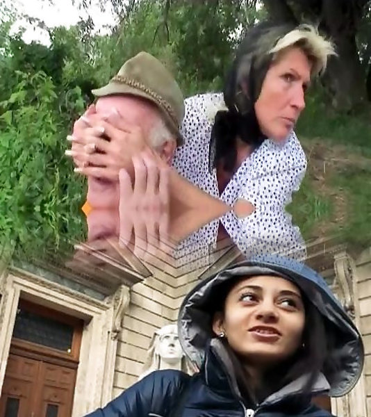 Granddad pummels huge-boobed teen and mother by the lake