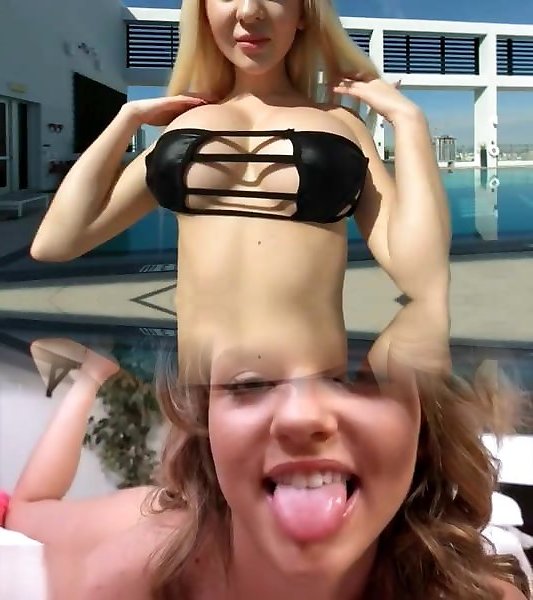 Blindfolded dude shags a busty blonde wearing a pink bikini