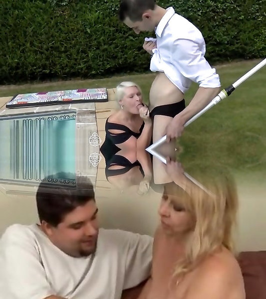 A pool boy gets nice blowage then boinks grannys moist cunny and greedy culo