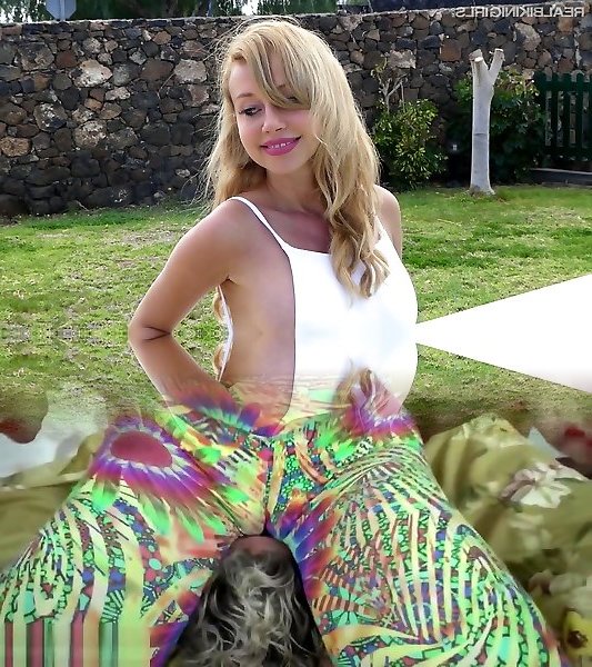 Bikini wearing towheaded gets a nice poke at the pool