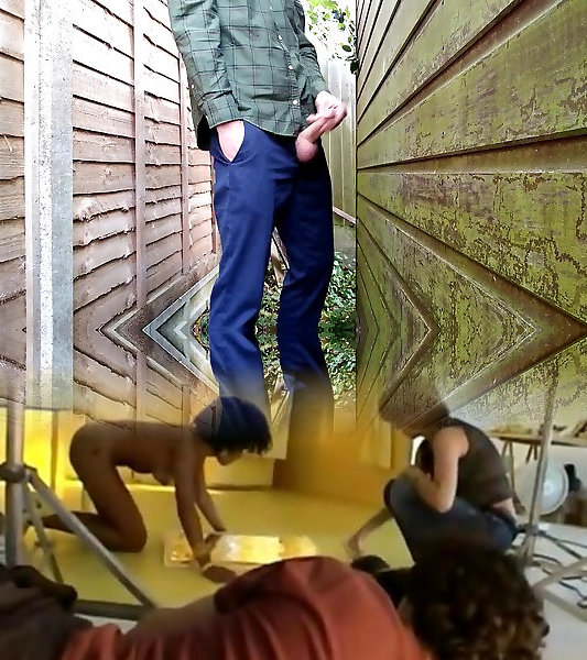 pissing sitting in the shed after cutting the grass