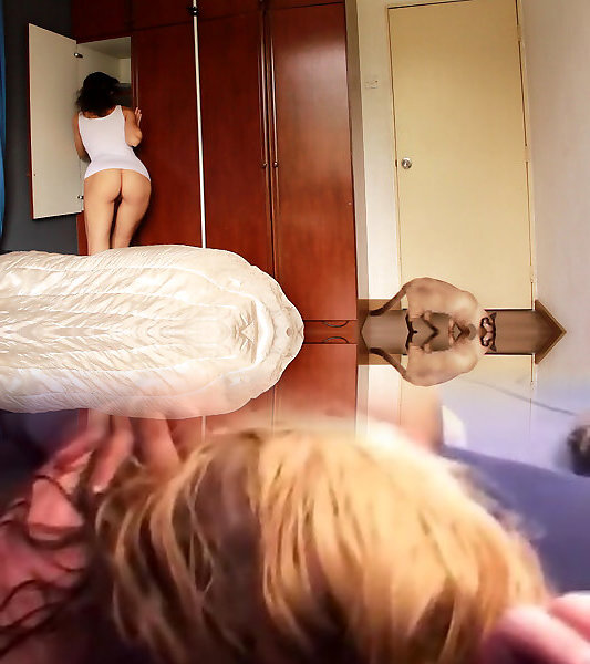 Killer Latina in black mesh bottoms getting bra-less for you