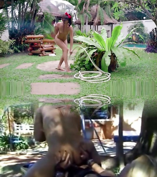 Backstage pin of Chrissy Marie posing bare for spycam private tutor outdoors