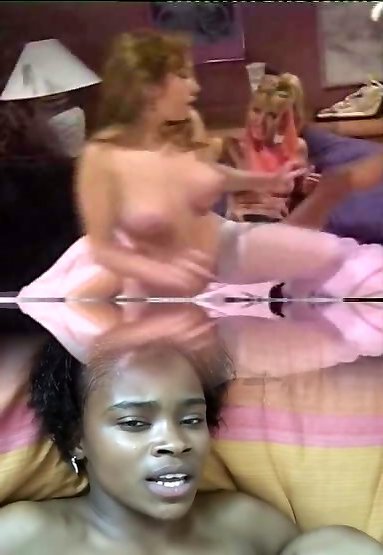 Black pornography starlets gargle and screw some thick dark-hued rods.