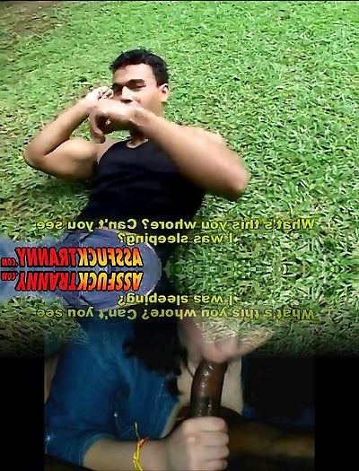 Gross Ladyboy getting her Thick Penis Gargled
