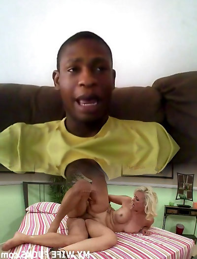 Blond she-male rides a white fuck stick