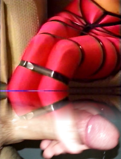 Latex angel - crimson fishnet sole job
