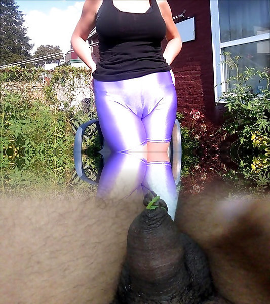 Tight leggins and a swollen, shaved pussy Dildo at the end.