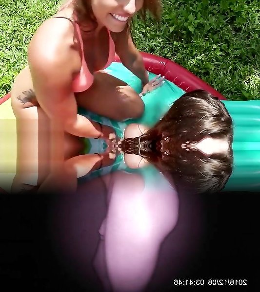 Young Sweetheart Gets Pulverized By The Pool During lesbians with lucky guy Break