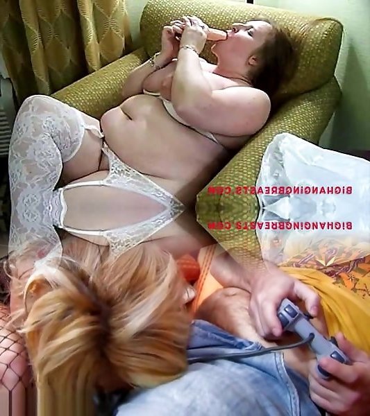 Yam-sized jugs mature in milky lace stockings and high high-heeled slippers