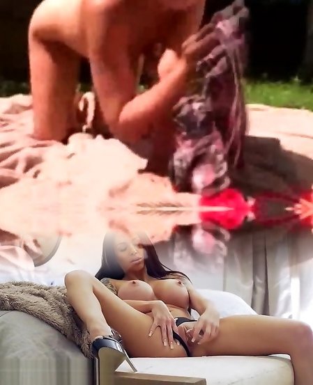 super-steamy big-boobed call girl caresses her hairy vulva