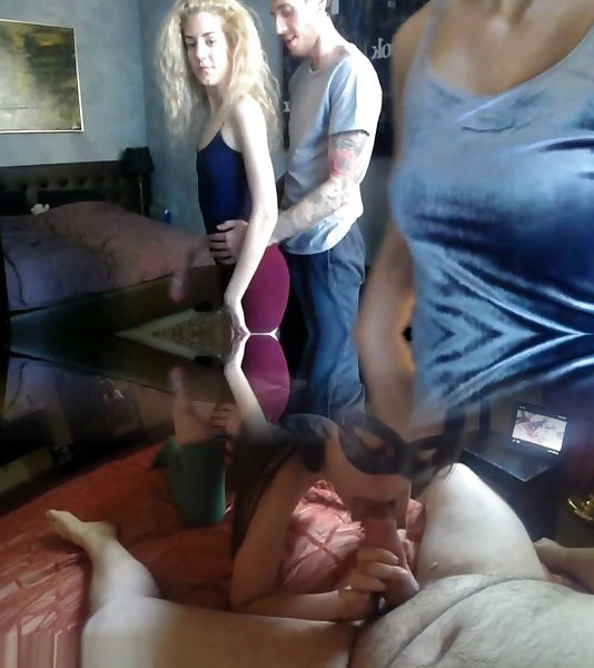 Cuckold fellates off Camerist before humping her Spouse