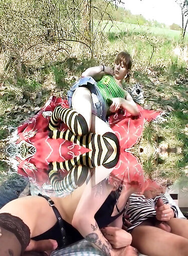 Two Super Hot Latina Tarts Share A Huge Cocked Stud By The River
