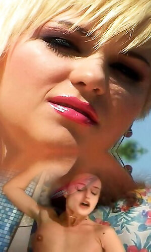 Juicy blonde Jenny Sisu masturbating by the pool