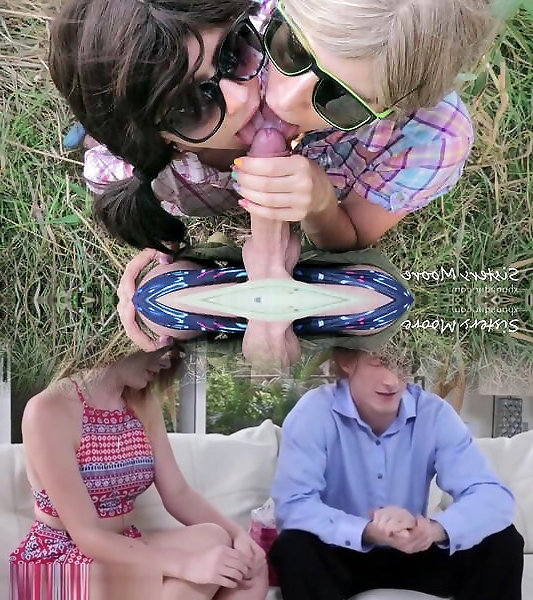 Outdoor point of view blow-job with 2 chicks, jizz flow on tongue, jism kiss