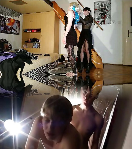 Punk dominatrix feminizes her cd sissy sub with femmes’s clothes pt2