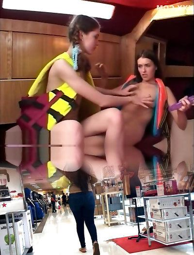 Teenage lesbians penetrate in bathroom