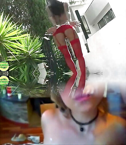 Nasty cougar faps dressed in a red g-string