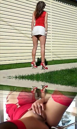Stellar red mules and feet play in front of mirror.