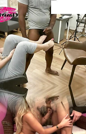 خانم کمک می کند تا به نوبه خود یکی دیگر از همکار&ترانزیت;همسر به یک فاحشه سیاه و سفید دیک بزرگ 1
