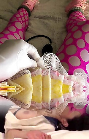 zablokowany lateks sissy napełnia korek do masażu wnętrzności